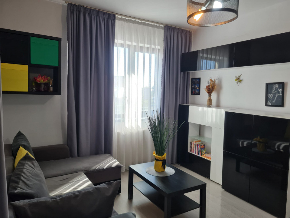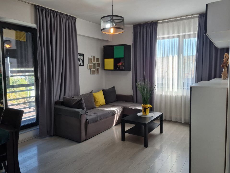 Living generos, luminos, cu acces către un balcon — ideal pentru relaxare sau socializare.