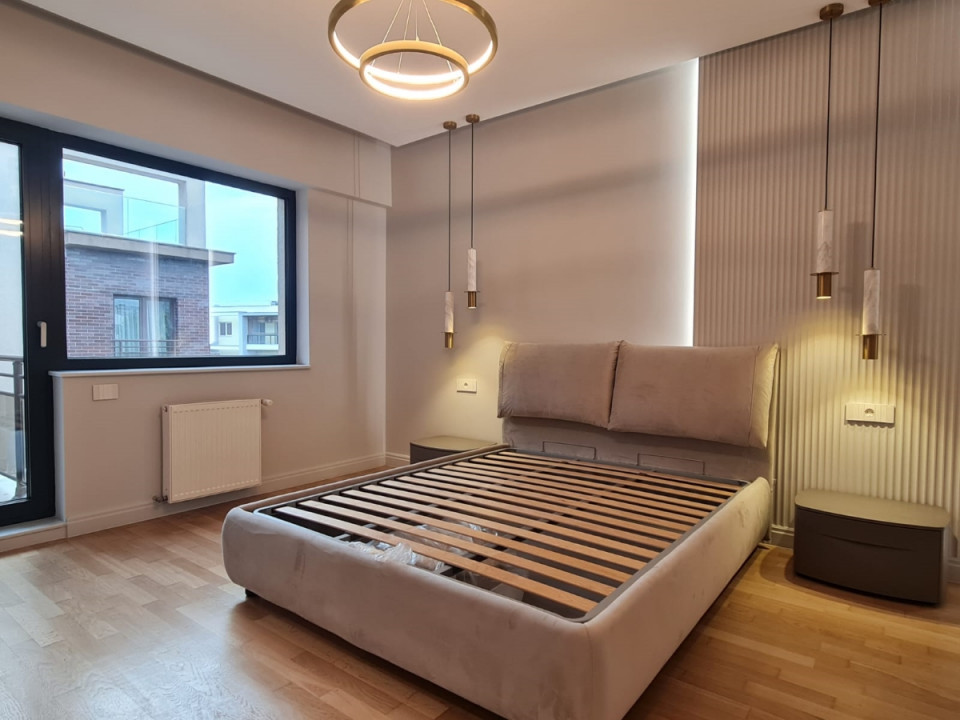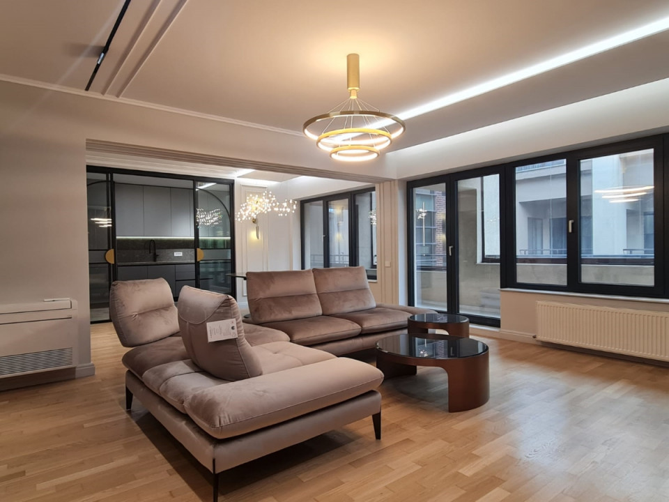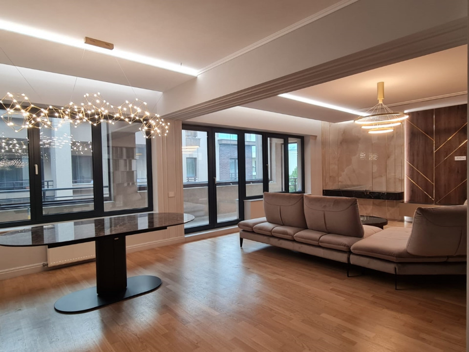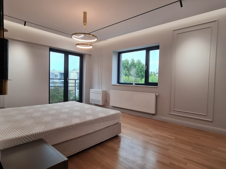Zona de prestigiu, la intrarea in Parcul Herastrau, avand in proximitatea imediata toate necesitatile unui stil de viata modern si confortabil: restaurante, magazine, scoli, gradinite, centre medicale, centre spa. Apartament exclusivist, revovat in totalitate, inclusiv geamurile termopan, modern, spatios, complet mobilat si utilat high-premium, se afla intr-un imobil elegant, paza 24/24, 1 loc parcare subterana, cu posibilitatea de a mai achizitiona 1. Design premium realizat impreuna cu echipa de arhitecti, zona de zi living-dining imensa, zona matrimoniala delimitata cu 2 dormitoare mari, 2 bai, dressing, mobila Rovere si comanda Italia. Finisajele interioare de calitate superioara: parchet masiv de lemn, pardoseli de piatra, usi Filomuro. Balcoanle de 27 mp, iti permit sa-ti savurezi cafeaua si micul dejun pentru o dimineata relaxanta.